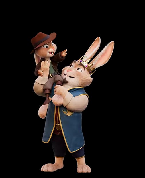 Chickenhare is an adventurous and energetic character who fearlessly dives into adventures with curiosity and passion, despite sometimes being clumsy. He views the world as a vast playground full of mysteries and treasures. However, beneath his brave exterior, he harbors insecurities and a deep desire for recognition, often feeling burdened by his differences.