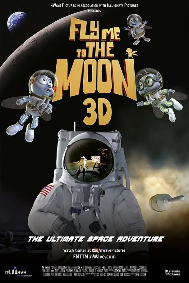 A space adventure of the third kind… In 1969, three astronauts dared to go where no man had gone before; the Moon. Today, nWave Pictures has created an animated feature film that takes you back to that historic moment. Producing and creating truly immersive 3D images, nWave literally puts you, the audience, into the action; a part of the story. “Fly Me to the Moon” combines the Apollo 11 mission with a whimsical twist involving three teenage flies who go along on an incredible space adventure. “Fly Me to the Moon” introduces new generations to space exploration and the historic moment when the world was united for this awe-inspiring achievement.